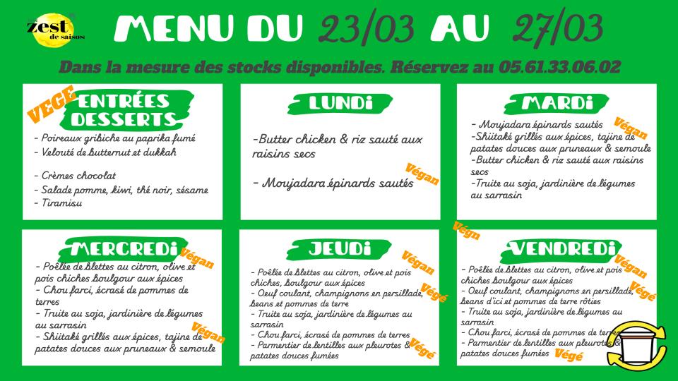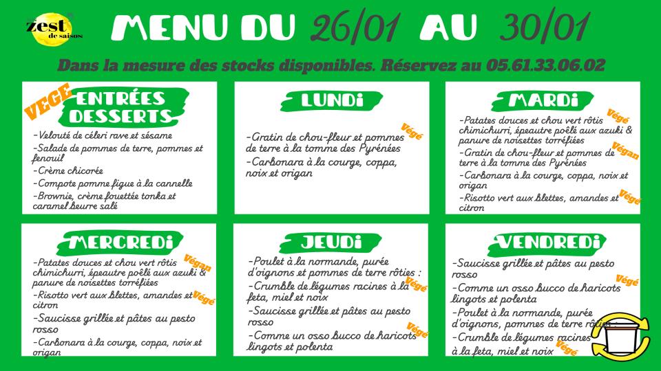 Menu de la semaine, sur place ou à emporter